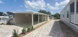 This brand new, move-in ready home is the Holiday Model which features 1456 sq. ft. of living space. The primary bedroom includes a generous walk-in-closet and adjoining bath complete with dual vanity and walk-in shower. The guest area includes a bedroom and bathroom. French-doors give access to the flex room, perfect for an office or hobby space. The laundry room serves as a secondary entryway, which provides access to the screen-enclosed lanai. Additional updates include tile backsplashes, paver carport, and attractive easy-to-maintain flooring.