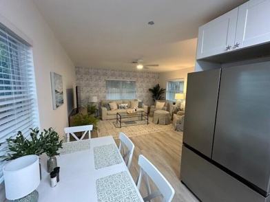 Welcome to your dream coastal retreat in North Palm Beach, Florida! This charming 2-bedroom, 2-bathroom bungalow has been meticulously renovated and is fully furnished, offering a perfect blend of modern elegance and comfort. As you step inside, you'll be greeted by an open-concept living space adorned with contemporary finishes and sun-drenched rooms that exude warmth and tranquility. The gourmet kitchen boasts sleek countertops and state-of-the-art appliances, ideal for culinary enthusiasts who love to entertain. Each bedroom provides a serene escape with plush furnishings and ample closet space with the primary suite featuring a King bed and the guest a twin trundle. The updated bathrooms feature spa-like touches that promise relaxation after a day enjoying the Florida sun. The bungalow has a private patio with a lovely table and chairs and a private grill for the perfect Florida evenings. There is also a shared patio for the three bungalows to use which features a shared laundry room with full sized washer/dryer and a second patio/common area with outdoor sofas and a hot tub. Situated in an enviable location, this turnkey property allows you to embrace the vibrant coastal lifestyle effortlessly. Just minutes away, enjoy morning strolls for fresh coffee at local gems like Jupiter Donuts or savor mouth-watering meals at PA BBQ before exploring the breathtaking Intracoastal waterways nearby. Whether you're seeking a seasonal residence or a short term vacation getaway, this bungalow offers unparalleled convenience with walkability to renowned restaurants and attractions. Don't miss out on this gem.