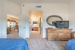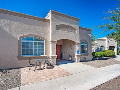 Beautiful fully furnished villa in the heart of San Ignacio with views of the Santa Rita mountains from the back patio. This home is perfect as a full-time residence or seasonal retreat. Monthly rent includes all utilities. This thoughtfully designed home offers two private suites, 'A' and 'B'. The great room concept features soaring ceilings, new carpet, a stylish kitchen complete with granite countertops and stainless-steel appliances. The spacious primary suite ('A') has two queen sized beds, includes a walk-in closet and an en-suite bathroom with dual vanities. There is also a stackable washer/dryer. The secondary suite ('B'), with its own private entrance has one queen sized bed, a full bathroom, and is equipped with a convenient kitchenette, new carpeting and new HVAC unit. The sofa in the living room has a queen sized hide-a-bed. Both 'A' and 'B' suites will sleep eight people. Additional highlights include two assigned parking spaces and a prime location directly across from the community pool. Access to Green Valley Recreation amenities is available. Short term rentals of less than sixty days pay the rent for the term of the lease plus the security deposit. Short term rentals of sixty days or longer pay the rent for the term of the lease and no security deposit. Rentals for 120 days or longer pay the rent monthly plus the refundable security deposit. The property is located in San Ignacio Villas in Green Valley, Arizona. It is an age restricted community with a Homeowners Association. The resident of the home must abide by the rules and regulations of the San Ignacio Villas Homeowners Association. At least one person residing on the property must be 55 years of age or older. A co habitant on the property must be 45 years of age or older. No person that is less than 18 years of age shall reside on the property for longer than three months in a 12 month period. After the term of the lease ends, the property will be rented month-to-month, if both the tenant and landlord agree. The monthly rent covers the cost of the following utilities: water, sewer, natural gas, electricity, garbage pickup, WiFi.