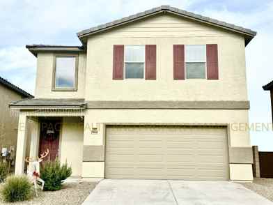 Absolutely stunning southwest home in the thriving Star Valley community! Built in 2025 this home boasts a gorgeous great room that flows seamlessly in to the kitchen and dining area. Kitchen includes huge island, all stainless steel appliances, gorgeous countertops and dark wood cabinetry. Second story includes a spacious loft and all 4 bedrooms. Primary suite has dual vanities, walk-in shower, plus a huge walk in closet! All other bedrooms are spacious and have plush carpet, too. Huge backyard features a covered porch, pavers, turf and gravel for a low maintenance outdoor retreat. Pet Friendly! Washer/dryer included as convenience. Trash Included! A/C! Enjoy the community perks which includes a park, basketball court, and dog park, plus easy access to I-10, I-19, shopping, dining, and more. Call or text 520-975-0403 for showings now!