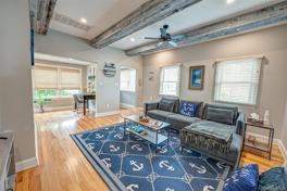 Fabulous waterfront home with detached garage . Living room with high ceilings, Primary ensuite, Gourmet kitchen with sliders to Trex decking, outdoor shower, detached garage. Docking is yours, with 40' of new bulkhead. Home is completely renovated, and very sharp.