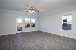 Dream retreat living in Celina. McKinney ISD! Nestled in the master-planned Venetian, this captivating 3-bedroom, 1-flex room, 2-bath home features a future Logoon planned by Megatel. It offers the perfect blend of modern living and natural beauty. Step inside to discover a home where elegance meets functionality. The open and airy floor plan is bathed in natural light, setting an inviting tone and vaulted ceilings throughout. Stylishly updated, the heart of the home features an open kitchen with white cabinetry and an expansive quartz island, perfect for culinary creativity and social gatherings. The adjacent living and dining area isn't just a space to relax but a place where everyday moments turn into cherished memories with a view of the backyard and tons of natural light. Oversized flex room at the front with upgraded bay windows is perfect as an office or formal dining. The master suite facing the backyard continues the theme of relaxation and privacy with a large walk-in closet and, boasting a spa-like ensuite bathroom with natural light, dual vanities, and a tile shower, ensuring a personal retreat from the hustle and bustle of daily life. Each of the 2 generously sized bedrooms provides a personal sanctuary with a shared full bath. The cozy backyard is perfect for outdoor entertaining. Wood like tiles are easy to maintain. 2023 Roof and AC. Tankless water heater. Positioned close to community amenities yet offering a sense of peaceful seclusion, this Celina gem is the one!