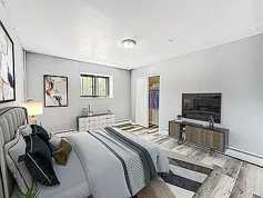 Welcome to this bright, move-in-ready apartment where modern updates blend seamlessly with classic comfort. Polished hardwood floors and oversized windows fill the expansive living space with natural light, creating a warm and inviting atmosphere. The open-concept layout flows effortlessly into a generous living and dining area, ideal for both relaxing and entertaining. The kitchen stands out with a mix of timeless wood cabinetry or sleek dark finishes, paired with stainless steel appliances and stylish tile flooring. The bathroom features elegant floor-to-ceiling marble-style tile, a crisp white vanity, and contemporary brushed nickel fixtures. Additional highlights include baseboard heating, thoughtful storage, and a functional layout designed for everyday living. Set in a charming brick building surrounded by mature trees, this home offers a peaceful retreat while remaining close to local amenities and transportation.