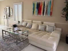 Available now for 2026 Season. Welcome to this immaculate & contemporary decorated Montoya Plan in Sun City Shadow Hills, a 55+ very active community. Style & comfort are blended together. This is a true vacation home with two bedrooms with a third bed in the den. The main bedroom is very spacious, has walk-in closet, the en-suite bathroom with dual vanities & walk-in shower have been completely upgraded recently. A sliding glass door allows direct access to the back patio & well landscaped yard. A large covered hot tub awaits you while BBQ'ing on a custom built BBQ island and large dining area with a 65' flat screen TV. The kitchen cabinets have recently been painted bright white. There is a coffee/tea bar and mini fridge in the bright kitchen eating area. Granite countertops and new stainless steel appliances round out the kitchen. Each bedroom has large flat screen TVs. Enjoy the open concept living space. Tenants have access to and may enjoy two clubhouses, fitness center, indoor & outdoor swimming pools, tennis & pickleball, bocce ball, shuffleboard, dog parks & many more amenities. Golf is available on a pay to play basis at the 18 hole Championship course & the par 3 North Course. Come home to this retreat in the desert. Call now for a showing.