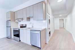 UNIT 303 - Overlooking the Dundas strip, our largest unit is a south-facing unit with modern design features large windows complementing the open-concept layout. Designer finishes/features include quartz c'tops, s/s appliances including d/w, in-suite laundry, roller blinds on all windows, custom closets, and AC.