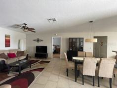 ONE-OF-A-KIND 2 bedroom, 2 bath, den/office with a futon, 1 car garage, long term rental home located in the Polo Ridge. This rental home is perfect for enjoying the outdoors with enclosed-in lanai with a separate open patio providing ample room for a grill and patio furniture. The entry door is under a covered front entrance perfect for sitting out on a beautiful Florida day. When you enter the home, you will immediately feel welcome by the warmth of the combined living-dining area with tiled floors throughout. The master bedroom has a queen bed, two dressers, a large walk-in closet, a walk-in shower with a glass door and a solar tube for your convenience , The first guest bedroom has a queen bed, a dresser and a chair. The guest bathroom has a tub with a door and a solar tube that provides extra light. The third room/den/office has a desk, a futon and a chair. The dinning room has a table with 6 chairs. The living room has a sofa, a loveseat and a TV. The kitchen comes with stainless steel appliances, and a gas stove. The enclosed lanai has two chairs, and a a ceiling fan. The open patio has two chairs and a table. This property is located 1.0 mile from Saddlebrook Pool & Recreation Center, 1 mile from Polo Field, 2.6 miles from Glenview Country Club, 2.2 miles from Savannah Center, 3.5 miles from Lake Sumter landing, 6 miles from Spanish Springs Town Square, just to mention a few. Additional Fees: $50 Villages ID Fee.