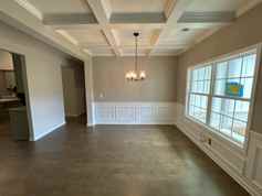 Open floor plan with all hardwood flooring throughout foyer, kitchen, dining room, kitchen and breakfast area. Stainless steel appliances with tile backsplash and granite tops in the kitchen. Kitchen is open to the living room making this home perfect for entertaining. Covered back porch with outdoor fireplace perfect for game days. Ranch floor plan with all bedrooms downstairs. Owner's suite bathroom boasts granite countertops, tile flooring and tile shower.