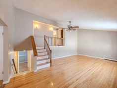 Spacious single-family home featuring hardwood floors throughout the main level, laminate flooring in the kitchen, and tile flooring in the finished lower level. The kitchen includes a refrigerator, dishwasher, vent hood, and double oven.