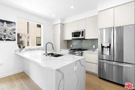 Available Now (can be delivered with current furnishings). Front unit that feels like a private and gated home!... This thoughtfully designed luxury townhome has no shared walls and features a private rooftop, open floor plan, and luxurious finishes. A state of the art MITON kitchen is equipped with LG stainless steel appliances, eat-in island, and opens up to spacious living/dining areas. The private rooftop terrace offers views of the Hollywood Hills, and is the perfect escape to watch TV, BBQ, or relax after a long day. Natural light and ample closet space are prevalent throughout. Additional highlights include: Washer/Dryer, private 2 car garage with direct access, EV Charging ready, gated driveway, wood flooring, surround sound, plus easy access to shopping, restaurants, and grocery stores in West Hollywood, Melrose District, and Hancock Park. Please note, photos may be of the similar model unit and not of the exact unit.