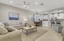 Welcome to 231 Evergrene Parkway, Unit 22-C, located in the heart of Evergrene, one of the most sought-after resort-style communities in Palm Beach Gardens. This light-filled residence offers an inviting open layout with tile flooring, neutral tones, and seamless flow between the living, dining, and kitchen areas, ideal for comfortable everyday living or entertaining. The kitchen features white cabinetry, generous counter space, and a breakfast bar accented by arched architectural details. The primary suite is conveniently located on the ground floor and serves as a peaceful retreat with wood flooring, natural light, and an en suite bath with dual sinks and a glass-enclosed shower. Upstairs bedrooms are bright and versatile, perfect for guests or a home office. Enjoy Evergrene's unmatched amenities including a resort-style pool, clubhouse, fitness center, tennis courts, and scenic walking paths. Available April 1st for annual lease, or shorter.