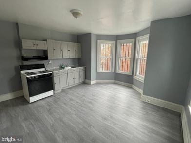 Experience modern comfort in this freshly updated second-floor apartment located at 1901 S Broadway. This elevated unit has been entirely transformed with a contemporary aesthetic, featuring brand-new, durable grey wood-look laminate flooring and a neutral grey paint palette accented by crisp white trim. The heart of the home is a bright, eat-in kitchen equipped with modern shaker-style grey cabinetry, stylish granite-patterned countertops, and a full-sized gas range. Large windows throughout this second-story space flood every room with natural light, highlighting the spacious layout and the classic radiator heating that ensures a cozy atmosphere. The bathroom has been thoughtfully refreshed to include a new vanity with a modern matte black faucet and a stylish arched mirror, while maintaining its original character with a classic blue tub and clean white wall tiling. This move-in-ready unit offers a clean and professional living environment on a prominent corner with excellent access to local transportation and neighborhood amenities. Whether you are looking for a stylish primary residence or a convenient live-work setup, this updated property provides the perfect canvas for your new home.