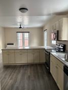 The updated kitchen includes stainless steel appliances and flows seamlessly into the living and dining areas, creating a bright and inviting space. Newer propane heat is included in the rent, offering efficiency and added value.