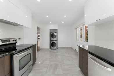 One month Free with a 12-month lease at 2700, bringing the rent to 2475/month (Negotiable). Fully renovated 3-bedroom corner unit with no neighbors. Security recording and monitoring using a multi-camera system around the dwelling. Comes with free Wi-Fi Internet, brand-new appliances (Washer/Dryer/stove/Fridge/dishwasher), and an AC unit with heat. Highlights of this location: * 3 mins walk to St-Laurent indoor Olympic sports complex * 5 mins walk to ST-Laurent Library* 7 mins walk to Place-Vertu Mall for groceries, banking, Pharmacy, Canadian Tire, shopping, restaurants, and Lufa Farm* 12 mins walk to IKEA* Jump off theAppliances included: Washer/Dryer/Fridge/Dishwasher/Stove/AC Unit--> 3 mins walk from the International Sports Complex.--> 8 mins walk to Bombardier Plant 1.--> 3 mins walk to Secondary School.--> 18 mins walk to IKEA Montreal--> 20 mins walk to Côte-Vertu Metro--> 10 mins walk to Place Vertu Shopping Center--> 6 mins walk to the library--> 7 mins walk to the Police Station--> Easily accessible to work within Saint-Laurent, West Island, Pierrefond, Laval, Downtown Montreal, and more. --> 8 mins walk to Gold's Gym. Features:Free Guest Wireless Wifi(Optional) EV charging available (Optional) Car Parking