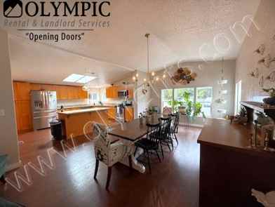 HUGE SHOP (1152 sq ft) & RV PARKING on this spacious 3.46-acre lot! Located on Steamboat Island! 3 bedrooms + office, 2.5 bath, 2530 sq ft home with woodburning fireplace. Kitchen appliances include refrigerator, glass top range, microwave & dishwasher. Home features vaulted ceilings & skylights. Primary bedroom with 5-piece en-suite bathroom. Washer/Dryer hookups. Electric furnace & water heater. Well Water & Septic system (no water/sewer bill)! Built in 1988. Manufactured home. No smoking. Pets negotiable with additional rent & deposit. Thurston County.