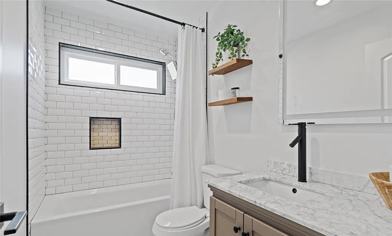 tastefully renovated 1-bedroom, 1-bathroom UNIT features an open floor plan with contemporary finishes and thoughtful upgrades throughout. Step into the inviting living room highlighted by a custom accent wall that adds a touch of elegance and warmth. The open-concept kitchen is a chefs dream, complete with quartz countertops, a large farmhouse sink, newer stainless-steel appliances, refrigerator, stove, dishwasher, microwave and washer/dryer, which are all included. It also features, soft-close cabinetry with convenient pull-out drawers.