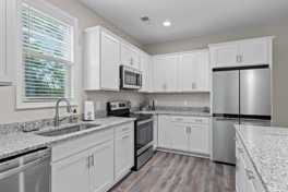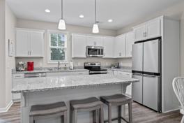 Available until mid-May, this beautifully designed townhome features an open-concept kitchen, dining, and living room on the first floor, where your family can gather around the large island to cook, play games, or relax. A half bath is also located on the first floor.