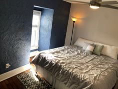 This historic, hillside duplex is fully furnished and offers views of downtown and the Allegheny riverfront from almost every room. This large third-floor apartment is 1,800 square feet in size. It boasts 2 large bedrooms, and a huge wet-room style bathroom that features a soaker tub with a downtown view. The stylish modern-industrial design accentuates a wide-open layout for the combined kitchen, dining, and living room space. The kitchen has concrete countertops, stainless steel appliances, and exposed brick. Large windows cast natural light on the hardwood floors that run throughout the entire unit. Take a step outside and go upstairs to the back deck where panoramic views extend from The Strip District down the Allegheny River to downtown. Although this is a shared space with the other unit, you will find this breathtaking escape to be surprisingly private. It's true that street parking can be tight in most of the Troy Hill neighborhood, however it is a sinch here because this building is a bit secluded from the other residences. Prefer to walk ? Cross the pedestrian bridge over PA-28 and walk the scenic riverfront trail. From this location you are a 20-minute walk from The Strip, Cultural District, and North Shore.