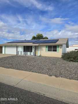 Very cute move in ready home that sits on a large low maintenance lot with no neighbors behind you. Fresh interior paint/new ceiling fans. The kitchen has refreshed cabinets with new hardware, pantry, and new stainless steel appliances. Nice sized 2 car garage with shelving and has an entrance to climate controlled parking for your golf cart. Both bedrooms have, walk-in closets. Very large interior laundry room that is ducted for heating and cooling. It has a fully fenced back yard. It has a large screened- in AZ room for those relaxing days. See and check out all that Sun City has to offer. Owner paid for solar included to lower you electric bill. No cats, but one small dog may be considered. $20.00 per month admin fee. $300.00 pet deposit. $30.00 per month pet rent.