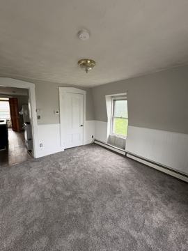 Features include freshly painted walls, newly carpeted bedrooms, and a kitchen equipped with a refrigerator and stove/oven. Tenants are responsible for heat and electricity.