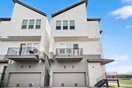 This modern 3-bedroom, 3.5-bath residence features a thoughtfully designed layout with high ceilings and natural-tone wood flooring throughout. The open floor plan creates a seamless flow between living spaces, while each bedroom includes its own attached bath for added privacy and convenience. The main level offers a versatile home office, along with a private bedroom and en suite bath. Upstairs, the open kitchen and living area serve as the heart of the home. The kitchen is finished with abundant cabinetry, warm natural wood tones, stainless steel appliances, and an oversized island with a built-in sink. The kitchen opens directly to the living area, which extends to a private balcony. The third floor features two additional bedrooms, including a spacious primary suite. A fenced backyard provides additional outdoor space. Ideally located near Houston’s Medical Center and the Museum District, this home offers convenient access to major roadways.
