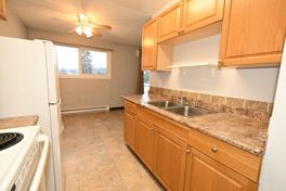 This spacious 2 bedroom 1 bathroom apartment is located at 213-4280 Quentin Avenue, Prince George and is available March 16th, 2026. The residence features a private balcony, galley kitchen leading into the dining and living areas, 2 good-sized bedrooms and a 4-piece bathroom. The building has coin-laundry facilities for you convenience. Rent is $1,495.00 per month, not including utilities. Parking options are available on-site for an additional charge: uncovered with no power parking $20/month/stall, uncovered with power parking $45/month/stall, covered with power parking $60/month/stall. Fantastic central location, across the road from Punchaw Park, close to Foothills Elementary, and DP Todd Secondary School, and not too far from to Spruceland Mall, and Exhibition Park. Smoking and disruptive behavior are not permitted. A small pet is negotiable, but requires an additional deposit. Rental references and evidence of income will be required.