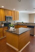 An updated kitchen with a breakfast bar, island, pantry, microwave, dishwasher, and full appliance package makes mornings smoother and dinner plans way more exciting.