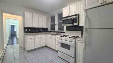Welcome to this Spacious 2-bedroom, 1-bathroom apartment for rent located on the third floor of a well maintained building. Featuring an updated kitchen with tile floors , hardwood floors in the bedrooms, and baseboard heating and window units for the AC. A convenient laundromat is located on the corner, free street parking. Please note, only cats are allowed—dogs are not permitted. Available to move in.