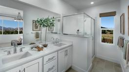 This two-story Next Gen home showcases a second-floor private suite with a living area, kitchenette, bedroom and bathroom that enables relatives to live independently. In the main home is an open layout among the living spaces on the first floor, while upstairs are two secondary bedrooms and the owner's suite. Rounding out the home is a two-bay garage and a Next Gen one-bay garage.