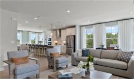 The kitchen flows seamlessly into a bright dining area and spacious family room, enhanced by oversized windows and sliding doors that open to a covered balcony—perfect for morning coffee or evening relaxation. A versatile den and stylish half bath complete the main level.