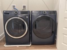 Two additional bedrooms, a full bath, linen closet, and a dedicated laundry room with high‑end washer/dryer provide comfort and efficiency.