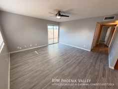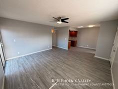 *$500 off of the first full month rent* Generously sized 2 bedroom 2 bathroom unit located in Glendale with wood plank flooring and custom grey paint throughout. As you walk-in the front door, you will be greeted by a bright open concept living room and eat-in kitchen area. The kitchen has updated shaker style cabinets, double sink and full stainless steel appliance package. The primary bedroom also has an updated vanity in the private bathroom and walk-in closet. Other amenities include a dedicated laundry room with washer/dryer, carport and an enclosed patio with private yard area. This cozy community has a pool for the hot Arizona summer, a dog station and close to historic area of Glendale, shopping and restaurants. Pet-friendly for up to two small spayed/neutered pets with a $300 deposit per pet and $35 monthly pet rent.
