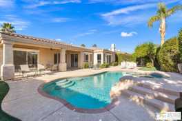 Seeking a responsible long-term tenant to call this exceptional home their own. This beautifully refreshed 4-bedroom, 3.5-bathroom residence offers over 3,063 square feet of bright, open living space, ideal for those ready to settle into relaxed Coachella Valley living, host gatherings with ease, or accommodate multi-generational family needs in unfurnished comfort. Step inside to soaring ceilings and abundant natural light that instantly welcome you home. Elegant living and dining areas flow seamlessly into the gourmet kitchen and include a cozy fireplace with built-in entertainment center. The chef-friendly kitchen boasts sleek black granite counters, crisp white cabinetry, a spacious center island with seating, stainless steel appliances (double ovens and gas cooktop), and generous storage to support your daily routines. The luxurious primary suite provides a peaceful retreat with direct backyard access, a spa-inspired bathroom featuring dual vanities, a soaking tub, a separate shower, and an expansive walk-in closet. Three additional well-appointed guest bedrooms ensure plenty of flexibility, highlighted by a highly desirable attached casita with its own private entrance and full en-suite bath perfect for long-term guests, family members, or a dedicated home office. Practical features include a convenient indoor laundry room with sink and storage, ceiling fans throughout for year-round comfort, durable tile flooring in main living areas, and fully owned solar panels that deliver outstanding energy efficiency and noticeably lower utility bills. Your private backyard oasis completes the package: a sparkling pebble-tec pool with raised spa and cascading waterfall, built-in outdoor BBQ bar ideal for relaxed al fresco meals, covered patio with ceiling fan, lush privacy hedging, low-maintenance landscaping, and stunning mountain views. All this is nestled within the secure, tranquil guard-gated Montecito community, just minutes from world-class golf, El Paseo's renowned shopping and dining, premier hiking and tennis, and the lively scenes of Palm Springs, Rancho Mirage, and La Quinta. This unfurnished home is ready for immediate move-in and available exclusively for a long-term lease (minimum one year). If you are a qualified tenant seeking stability, space, and desert resort-style living, this rare opportunity is for you. Schedule your private tour today!