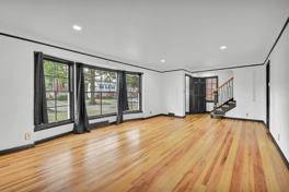 A charming two-story colonial with a beautifully finished attic addition that adds even more livable space full of natural light. Just off the dining area is a generously sized bonus room, ideal for a home office, creative studio, or hobby space. The kitchen stands out with striking black cabinetry, rich butcher block countertops, and a sleek backsplash that ties the design together with modern elegance. A quaint breakfast nook off the kitchen offers an intimate space to enjoy morning coffee or quiet meals. The half-bath completes the first floor.