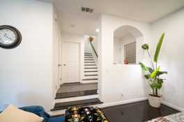 Spacious and beautifully updated 4-bedroom, 2.5-bathroom home featuring a sunken open living room floor plan with bamboo flooring throughout. The kitchen offers vinyl flooring, a breakfast nook, brand-new appliances, and abundant cabinetry for storage. Upstairs includes all-new flooring, a large primary suite with a renovated walk-in closet, and a primary bathroom with dual vanity sinks, along with three spacious guest bedrooms and a full guest bathroom. Additional highlights include a new washer and dryer, a peaceful low-maintenance backyard ideal for entertaining, and direct access to a 2-car garage equipped with a Level 2 EV charging station. Located in the desirable Cambria Village community with access to a large pool. Conveniently situated near major freeways (210, 5, 405, and 118) and close to shopping, Target, and the new In-N-Out Burger. Water and power included.