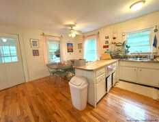 This light-filled, two-level home features beautiful wood flooring throughout (tile in the bathroom), skylights that bring in abundant natural light, and an open-concept kitchen and living area on the main floor. The kitchen offers butcher block countertops and a comfortable layout ideal for both everyday living and entertaining.