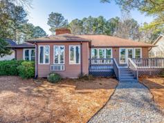 Charming Lakefront Home in Gated Woodlake Community Nestled in the gated Woodlake community, this 3-bedroom, 2-bathroom ranch home offers serene lakeside living. While the lake is currently undergoing dam repairs, expected to be completed in 2026, there's still plenty of water for fishing and canoeing. The property features a dock for fishing and a 3-person canoe available for renter use. This home boasts a spacious split floor plan with an eat-in breakfast area, a formal dining room, a bonus room perfect for a home office, and a sun porch. The deck, ideal for entertaining, overlooks the peaceful waterfront. Additional features include an attached 2-car garage and a sunken living room with a gas fireplace. The gated community is family-friendly, with private security, a 35 mph speed limit throughout, and a children's playground. You'll see almost as many golf carts on the road as cars, and this home is located on one of the quietest streets in the neighborhood perfect for families or anyone seeking a peaceful lakeside retreat. The community is also home to the Woodlake Country Club, which features one of the East Coast's most beautiful golf courses. Conveniently located with easy access to Fort Bragg, Southern Pines, Pinehurst, Whispering Pines, Sanford, and Fayetteville.