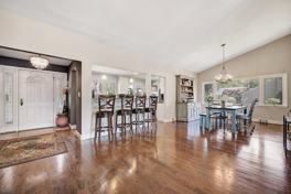 This exceptional split-level home offers an open-concept layout designed for effortless entertaining, highlighted by skyline views and dramatic architectural details. The living room impresses with soaring ceilings, while the sunken den with a fireplace creates a warm, inviting retreat. Step outside to a two-tiered deck with sweeping views, perfect for hosting or unwinding, and enjoy seamless access to NYC transportation. The home features a renovated kitchen with granite countertops, stainless steel appliances, and a breakfast bar ideal for casual dining. Rich oak floors run throughout, complemented by oversized picture windows that flood the rear of the home with natural light and stunning vistas. The second level offers two updated full baths and generous closet space throughout. On the lower level, a walk-out recreation or playroom with a full bath provides flexible living options for guests, work, or leisure. Located in the coveted Upper Gregory neighborhood, this home sits on one of the area’s most picturesque streets, just steps to the jitney for the South Orange train station and only one block from the NYC bus.