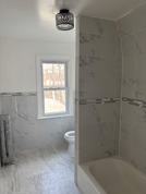 The unit features brand-new gray flooring, a fully updated bathroom with marble-style tile and soaking tub, and great natural light throughout. The bedroom is comfortable and well-proportioned, ideal for rest or a work-from-home setup.