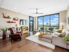 Enjoy luxury living with this gorgeous 5th flr condo in the desirable Parks Edge building in the Arena District! Offering 2 bedrms, 2.5 bathrms, nearly 2,000 sqft of living space and an open, single-level layout with stunning downtown & river views from every room. Beautiful, neutral kitchen with light cabinetry, two-tone countertops, SS appliances and an oversized island that overlooks the dining and living areas. A spacious primary suite boasts ensuite w/double vanities, tiled shower & huge walk-in closet with custom cabinetry. Additional features include spacious guest suite w/ensuite bathrm & closet, huge walk-in pantry & a private, covered patio + garage parking for 2 cars! Parks Edge amenities include 24hr concierge, rooftop pool, fitness facility & more!