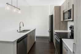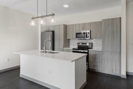 Each thoughtfully designed apartment features hard plank flooring, in-unit laundry, and forced heat and A/C for year-round comfort. Cook with ease in a modern kitchen complete with stainless steel appliances, a dishwasher, and microwave, with a spacious island featured in most units.