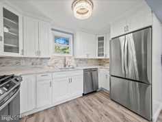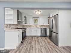 4BR / 2BA remodeled ranch, approx. 1,300 sq ft. Open-concept layout with updated kitchen featuring quartz counters, marble backsplash, stainless steel appliances, and French-door refrigerator. Primary suite with double closets and full bath. Flexible 4th bedroom ideal for office or family room with separate exterior access. Bright, modern, and move-in ready.