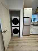 This brand new rental has one bedroom and a full bathroom with beautiful walk in shower. Upon entering, you are greeted with an open concept living room and kitchen with stainless steel appliances and soft close cabinets. Tucked away into a closet is a brand new stacked washer and dryer provided for your ease.