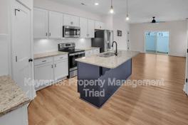 The heart of the home is a chef-inspired kitchen featuring sleek granite countertops, stainless steel appliances. A large kitchen island, perfect for meal prep, casual dining, or gathering with guests. Retreat to the inviting living room or step outside to your private outdoor patio to enjoy the North Carolina breeze. Situated in a friendly HOA community, you’re just minutes away from local gyms, premier shopping, dining, and easy highway access.