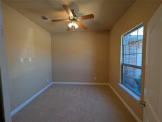 Beautiful newer home near downtown Wylie! Elegant landing leads to office or den right by the front door. Nice and open living room with fireplace and views of the fenced backyard and patio! Dining room off kitchen. Appliances include dishwasher, electric oven range, and microwave. Three beds and two full baths. Fresh carpet throughout, with tile in kitchen and bathrooms! Primary bed features en suite bath with tub and shower, dual sinks, and walk in closet! Full size washer and dryer connections in laundry room. Two car garage attached! All utilities and yard care separate from the lease. No pets allowed. App fee is $50 per adult, deposit is the same amount as rent.