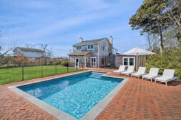 Welcome to this beautifully renovated 4-bedroom Hamptons retreat in Hampton Bays, designed for effortless summer living. Filled with natural light and styled in a relaxed coastal palette, this home blends classic Hamptons charm with modern comfort. The interiors feature airy, open living spaces with crisp white finishes, wide-plank wood floors, and thoughtfully curated furnishings. The main living room flows seamlessly into built-in shelving and cozy gathering areas, creating the perfect setting for entertaining or unwinding after a day at the beach. Bedrooms are serene and inviting, each styled with a soft coastal aesthetic for restful summer nights. Step outside to your private backyard oasis, complete with a newly finished pool, clean concrete coping, and ample brick patio space for lounging and dining. Manicured grass and fencing create a polished, private setting, ideal for long summer afternoons by the pool. Perfectly located, this home is just minutes from Hampton Bays' best restaurants, waterfront dining, marinas, and ocean beaches, offering easy access to boating, swimming, and all the Hamptons has to offer. Enjoy hosting and enjoying a quiet seaside escape, this turnkey summer rental delivers the quintessential Hamptons lifestyle. Current photos are virtually staged. Furniture and decor to be finished in the Spring. AVL md-ld, july, august. Inquire with exact dates for pricing.