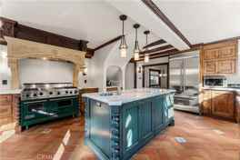 The dramatic living room seamlessly connects to the courtyard, enhancing the indoor-outdoor living experience. The property also boasts an abundance of unique features, including an Italian Villa ambiance and authentic details throughout.