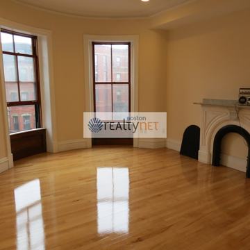 South End... Mass. Ave near St. Botolph St... Gorgeous Entire Floor Two Bedroom Apartment in meticulously maintained brownstone steps to Symphony Hall and the Prudential Center. Front-facing living room with bay windows, hardwood floors, high ceilings, Central Air, decorative marble fireplace and large alcove perfect for dining or home office. Separate fully-applianced kitchen with gas cooking and maple cabinets, tiled bath. Common laundry. Gas heat not included. Cats ok. Parking available for $195/month. One Month Fee. Available 8.1, 8.15 or 9.1 for $2800.