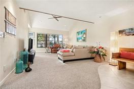 Tucked among mature trees in the sought-after Jacaranda community of Park Shore, this unique townhouse-style residence lives like a private clubhouse in the treetops-warm, welcoming, and filled with natural light. Vaulted ceilings and skylights create an airy, sun-filled atmosphere on the main level, complemented by oversized storage, extra kitchen cabinetry, and thoughtfully designed living spaces that feel both comfortable and refined. The remodeled kitchen features granite countertops, new tile flooring, and updated finishes, making everyday living effortless. The primary bedroom has a king bed and two large closets. The adjacent lanai offers a great place to enjoy your morning coffee or to relax at the end of the day. The second bedroom offers two twin beds and a full bath. With just over 2,000 square feet across the main living area and loft, the layout is exceptionally flexible. The second-floor loft functions beautifully as a third bedroom, home office, or creative retreat and includes a full bath. Soft finishes, decorative wall accents throughout enhance the home's cozy, "settle-in and stay awhile" feel. Covered parking adds everyday convenience. Residents enjoy private Park Shore beach access just .08 miles away, a community pool, and a quiet, intimate setting with only 22 residences, all just minutes from Downtown Naples, Waterside Shoppes, Venetian Village, and Mercato shopping, dining, and coastal lifestyle favorites. Both A/C systems are newer and under warranty, offering peace of mind year-round. Whether you're looking for a seasonal escape or a longer-term retreat, this residence offers space, privacy, and location-a rare combination in Park Shore. Your piece of paradise may only be one preview away.