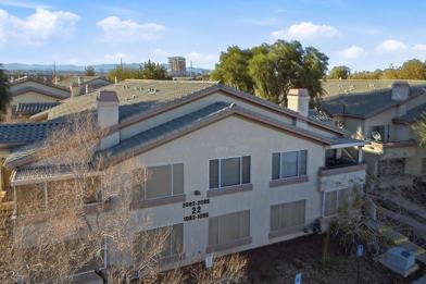 Beautifully updated downstairs unit with brand-new interior paint and a warm, inviting living room fireplace. This home offers a large den, two spacious bedrooms, and a primary bedroom with a walk-in closet. Full appliance package included - washer, dryer, and refrigerator. Solar screens on the patio and front windows enhance comfort and energy efficiency. Move-in ready and a must-see!