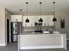 Welcome to this beautifully designed new construction offering 4 bedrooms, 3 full bathrooms, plus a dedicated office, ideal for remote work or a flex space. This modern home features tile flooring throughout and an inviting open-concept layout filled with natural light. The chef's kitchen is a true showstopper with stainless steel appliances, quartz countertops, a striking waterfall island, and contemporary pendant lighting, perfect for entertaining. The spacious living area boasts tray ceilings with a ceiling fan, adding elegance and comfort.